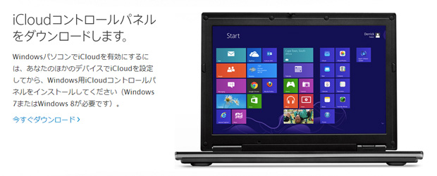 Windowsパソコンをご使用の方は、アップルの公式ページから「iCloud コントロールパネル」をダウンロードしておきます。