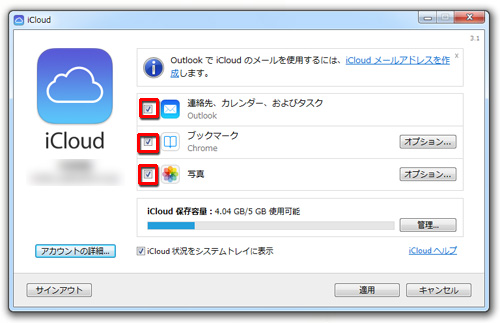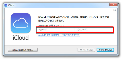 iCloud コントロールパネルをインストールしたら、Apple IDでサインインしましょう。